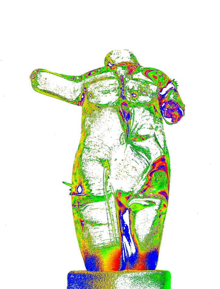 However, the printer jammed and caused a malfunction which needed professional help.  The image I got with the damaged printer is similar to the the one with the white background (black print head not dispensing ink) so it went into the show as “Surreal Female”.  I later made the image you see here by removing all the black from the digital image.  Once in a while mistakes work out for the best.