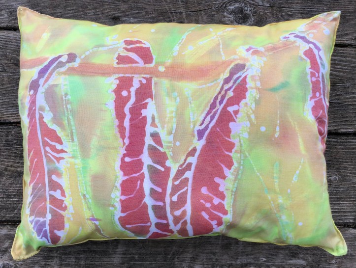 Last fall I decided to pursue a new artistic interest, batik.  Starting with books from the library, I experimented with various techniques, with many frustrations. This spring I connected with someone local with batik experience to help me with the next level. Unfortunately Covid struck before we could actually get together. This, together with an increasingly sore right wrist, has presented even more challenges.