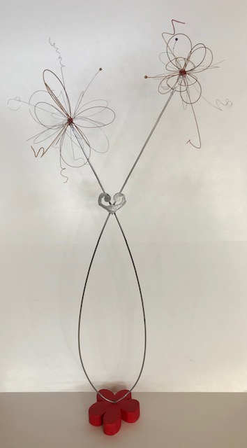 Sylvie Juteau: It all started with Kim and Harry Ewen visiting an Ottawa musical instrument “renowned doctor”, noticing a large bin of discarded instrument strings and thinking to themselves, “Hmmm, wonder if Sylvie would be inspired by those? After all, it’s metal right?”