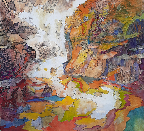Reflections of Passion by Yanni, watercolour with acrylic, 15 x 14 in.