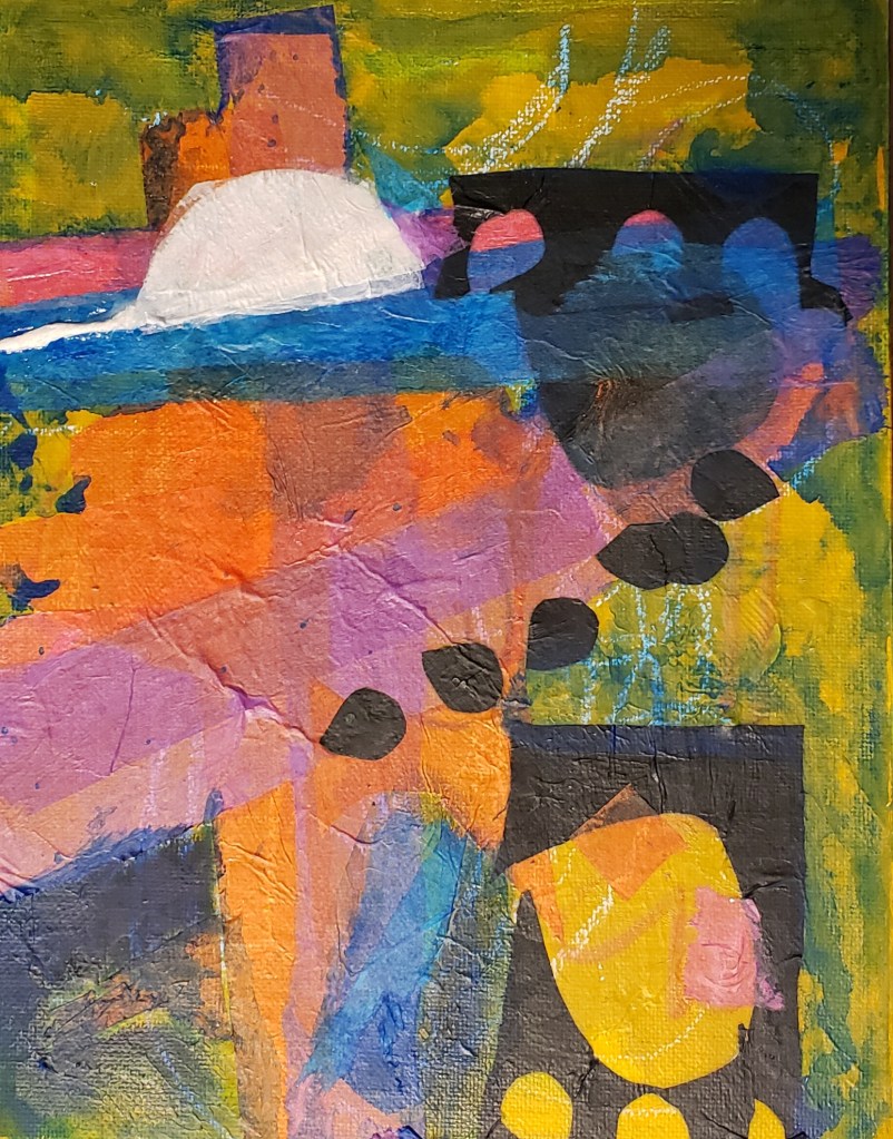 Collage on canvas board.