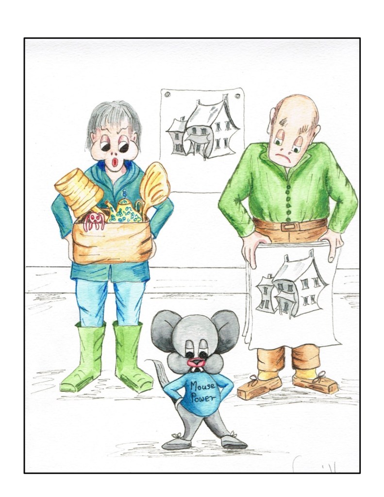 by Flip Flockton One of the few upsides of Covid restrictions is the time to go through papers, drawings etc. In doing so, I came across my illustrations for a slim volume of 30 vignettes of ‘life after 70’ which I put together to raise money for my favourite charity. Amongst these was one where a mouse makes an unexpected appearance. I thought it might amuse some of the members