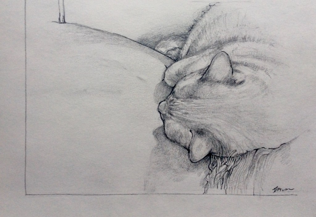 Hi Yvonne, I started doing the daily sketches again [see CC: 14Feb2021]. As Jay [hubby] is forever on nights, this little dude, Poot, is my company in the evenings. He is very loving, when he’s not asleep!