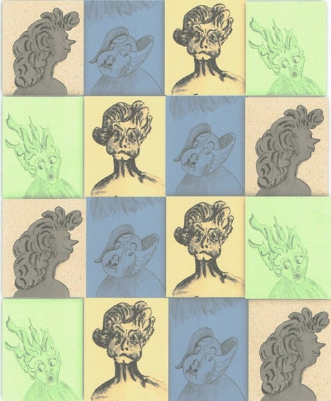 Originally, I thought these images could be used to illustrate (hopefully) witty stories. The first idea fizzled out: an unnamed dog (or a human wearing a dog mask) with a mysterious blue stripe at the vet for a grooming trim, together with humans desperate for a post-lockdown haircut. After which, full writer’s block set in!  Instead, I decided to scan the drawings and play around with the limited artistic options on my ancient version of WORD, which was great fun and an eye-opener!