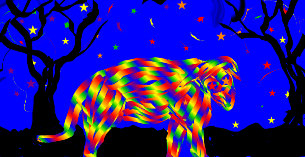 Rainbow Dog Under the Stars, Susan Irving, Draw Free Picture