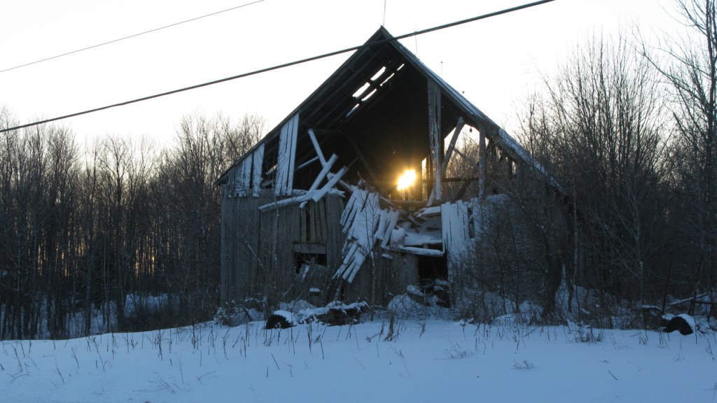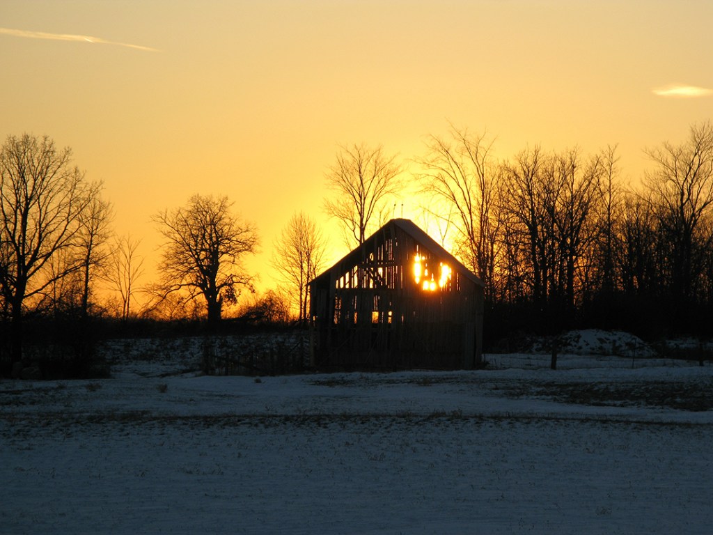 Winter shot of another old barn , fading structures and a fading winter sun published in the News. The Dalkeith barn is gone !
