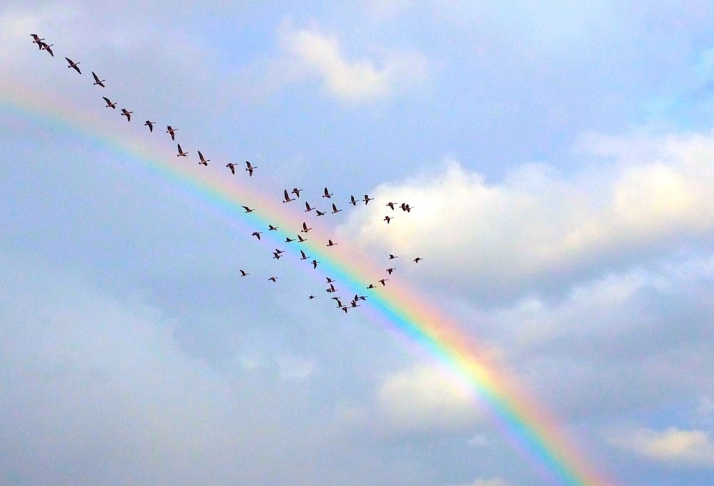 I heard this group coming and the rainbow decided to join the scene so I waited for the merge…nice !
