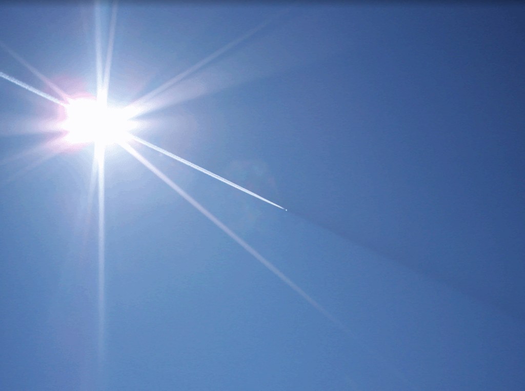 I wanted a jetliner vapour trail on a blue sky and shot into the sun…the sunburst was accidental but merges with the planes trail exactly so quite an effect.