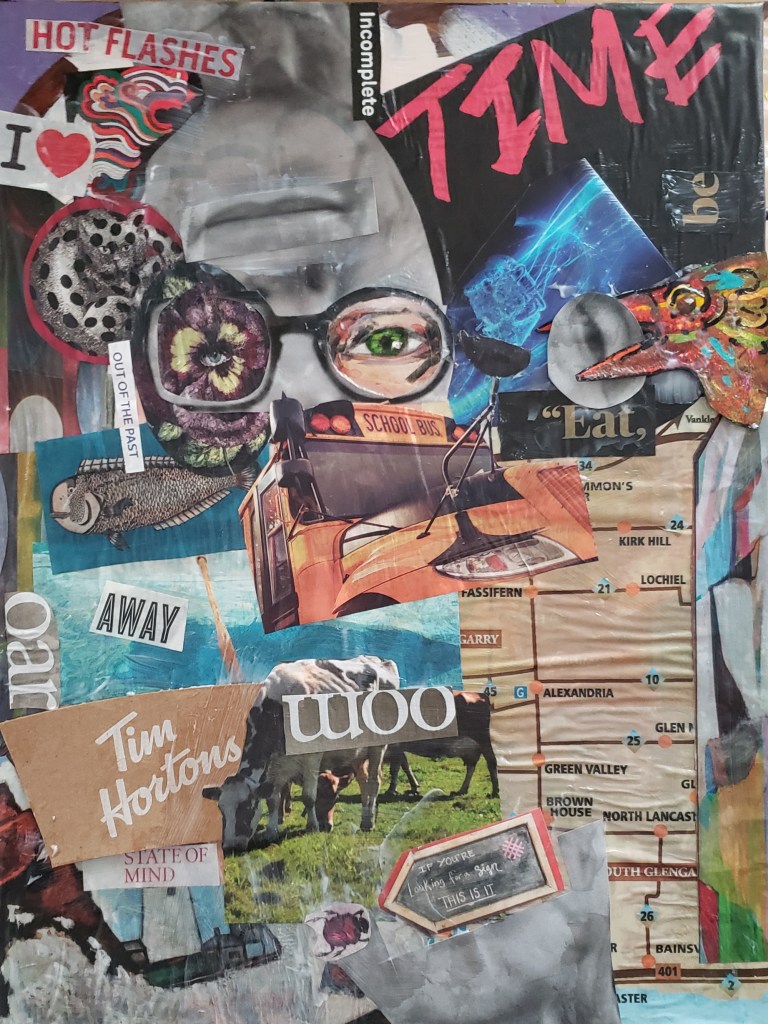 By Kerry Herwynen MacIntosh I have little to say about my self portrait collage, except that, while I love to do collage, I hate having to do it.