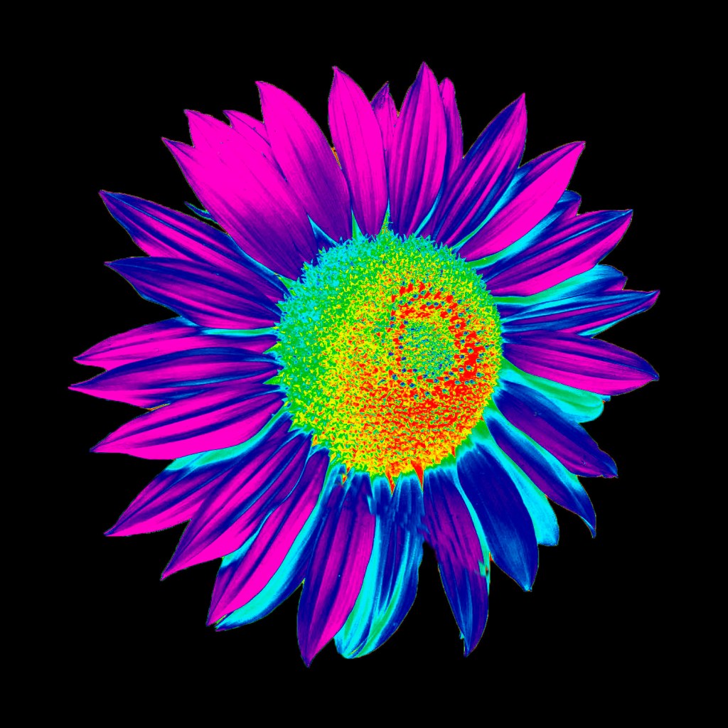 Colourized Giant Sunflower on a black background