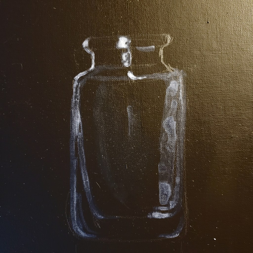 Here is the black canvas disaster. The black gesso shows as grey in the picture. It’s 8″×10″ and will soon be gessoed over. Try, try again…