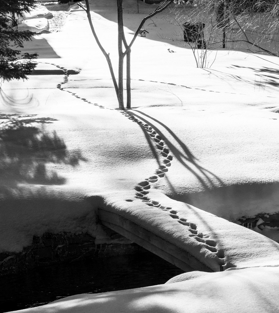 Just a few steps away I got this (to me) interesting image of footsteps in the snow and made it B&W.