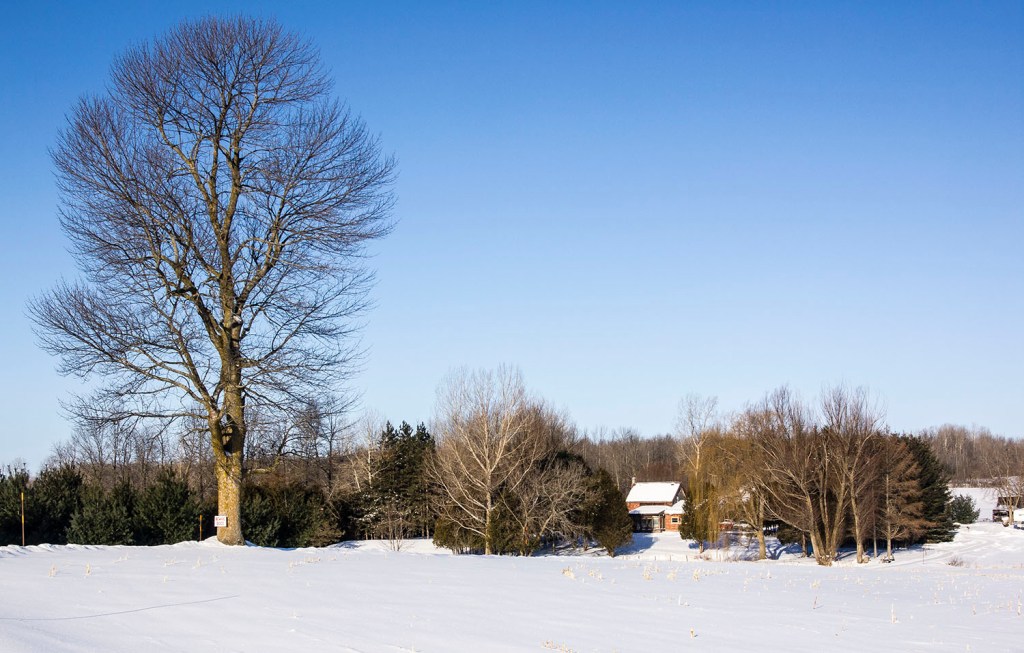 I decided to drive along Kenyon Concession 4 and got a nice sunny image of a farm with a large tree in the foreground.