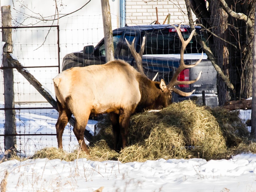 Back along 43 and the light on the elk having breakfast made the shot.  Helped by the telephoto lens and some cropping and up-sampling.
