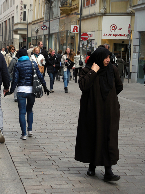 Before DSCN1907 -what interested me about the image was the ethnic diversity and how the two pedestrians are looking straight ahead seemingly unaware of each other.