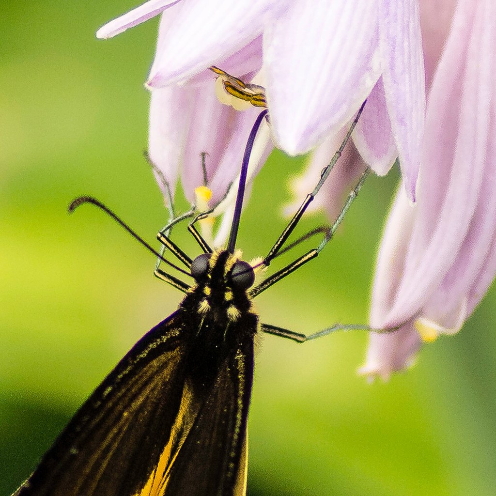 One image was sharp enough to make an 8X enlargement to get a good look at the head/some of the torso and the legs of the beast. Very pretty as it fed on the Hosta Flowers.
