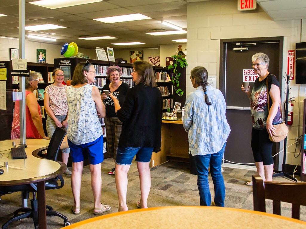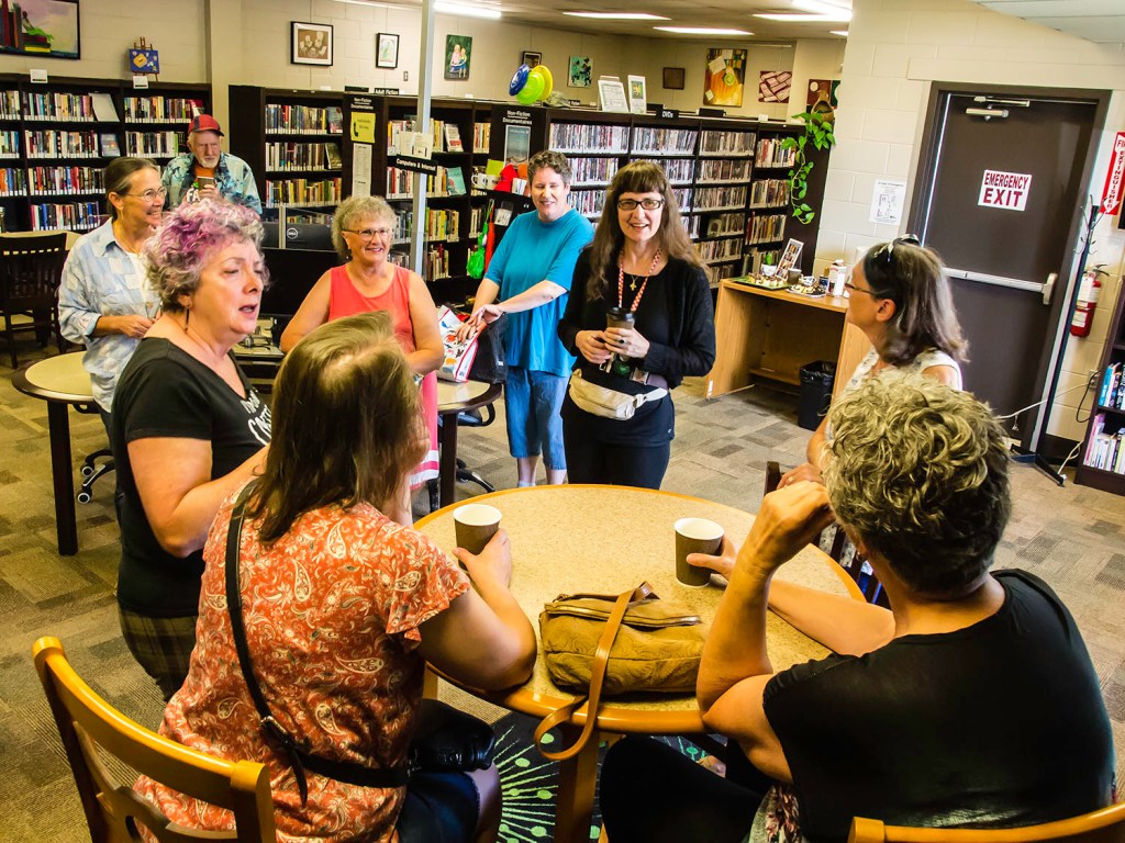 What happens when 15 artists & patrons get together with coffee & cake? Art talk, varied and wide-ranging. From upcoming events to techniques to, well, the benefits of joining. It was such a lively happening that the normally one-hour event expanded to more than 90 minutes