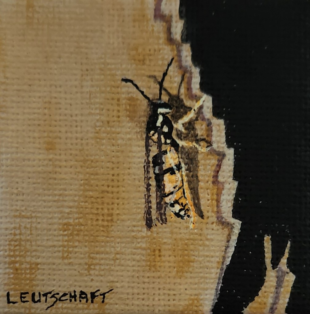 [Ed. note: the pink background is Bobi’s hand. This is a teeny-tiny painting!]