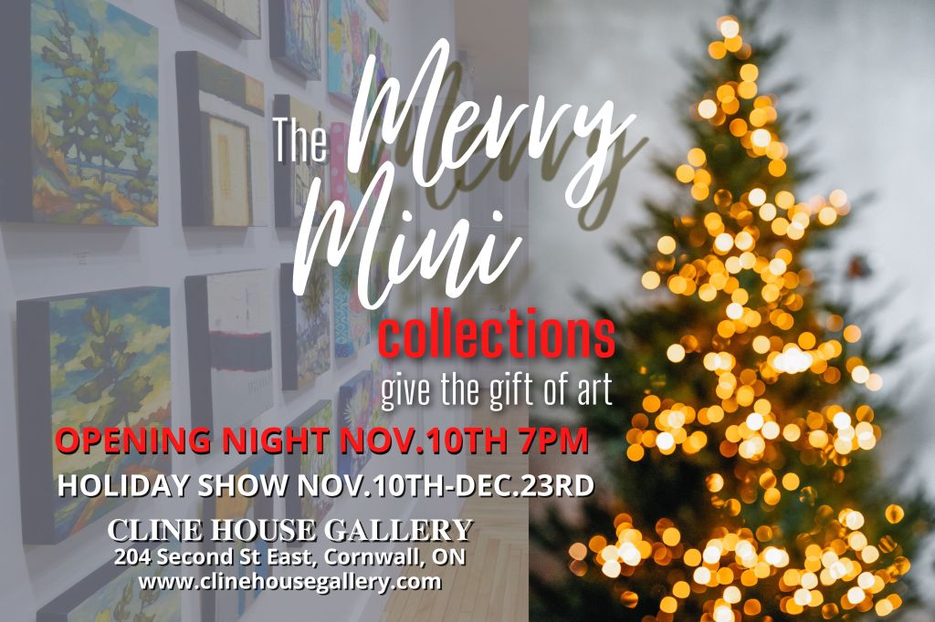 From 10Nov to 23Dec2022, the Cline House Gallery at 204 Second St. E. In Cornwall is exhibiting the Merry Mini Collections. 40 artists, including Collective member Claudette Vaillancourt, will be showing 200+ 12×12” paintings. Great gifts – for yourself or others!