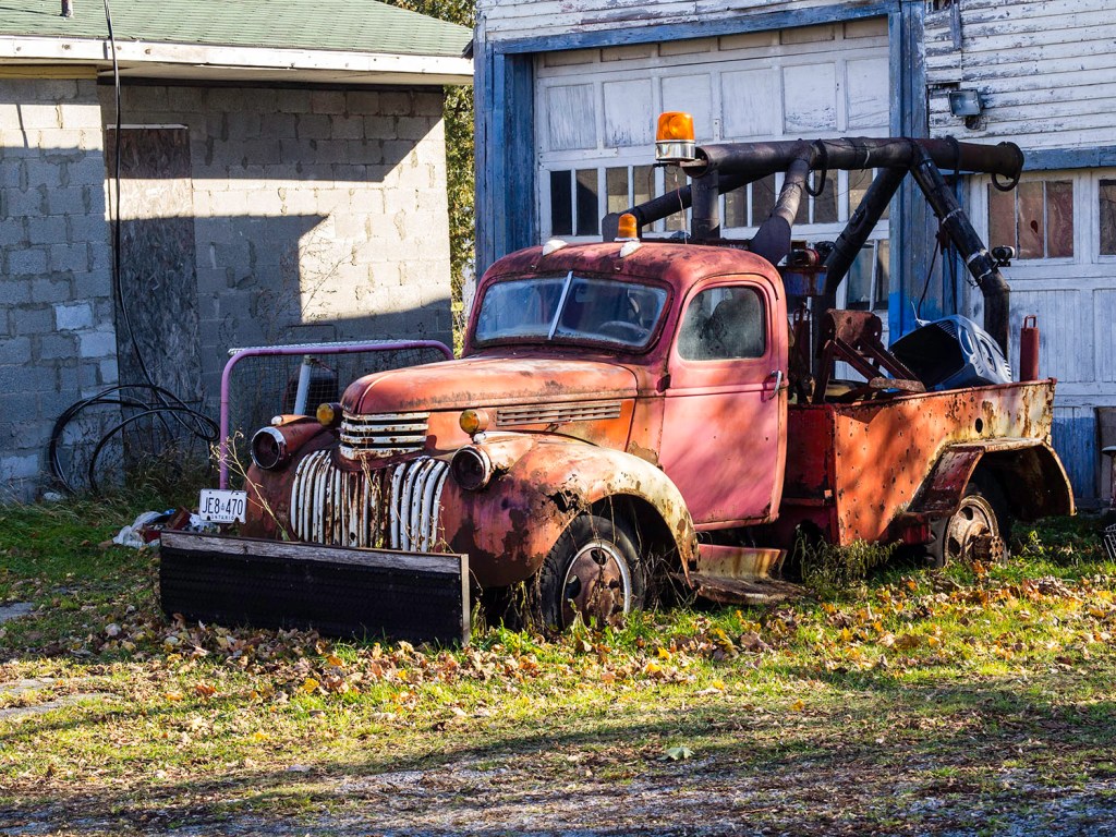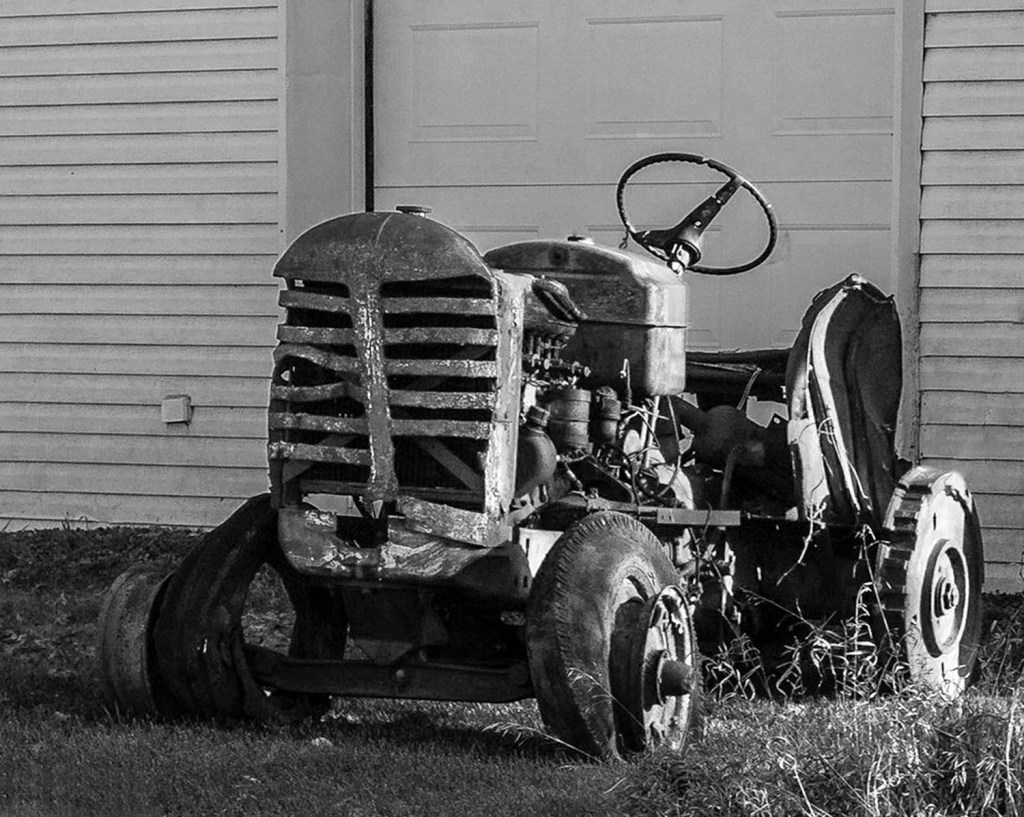 We were recently guided by a friend to this old wreck of a tractor at the western end of county road 21.  I liked the late afternoon sun as it struck the side of the vehicle but then decided to make it black and white to make it feel a bit older.