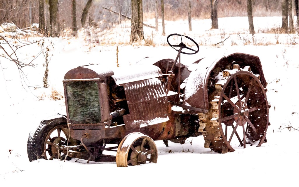 The final image was made on county road 45. The landowner has a collection of old farm equipment strewn around the property.  This was (obviously) shot in winter and the snow makes the image more striking.