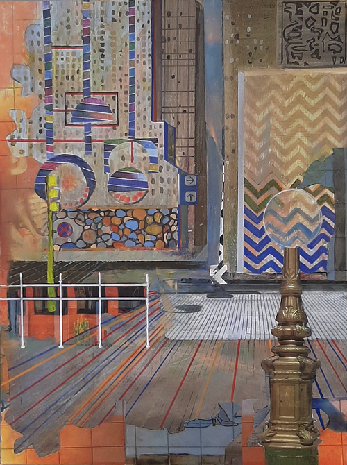 Mixed media on panel, 24 x 18″