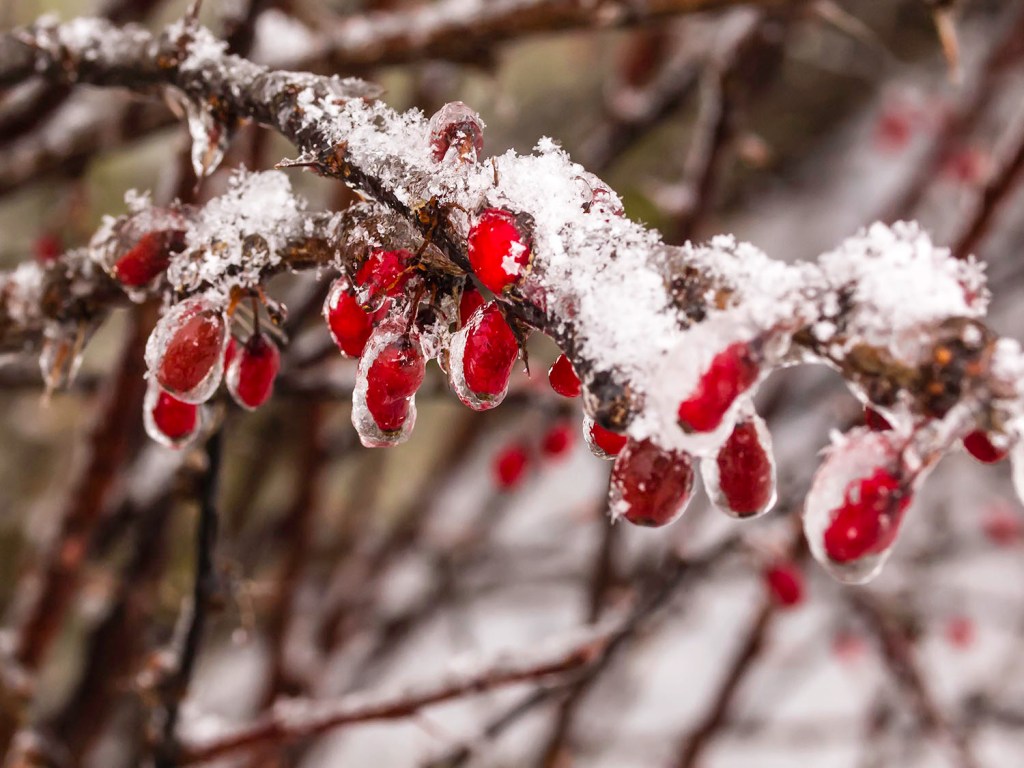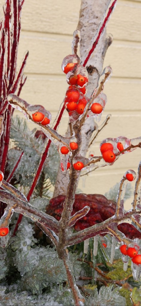 #2 are some little red berries growing just beside the frozen flowers. Need to suss these out at the same time.
