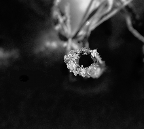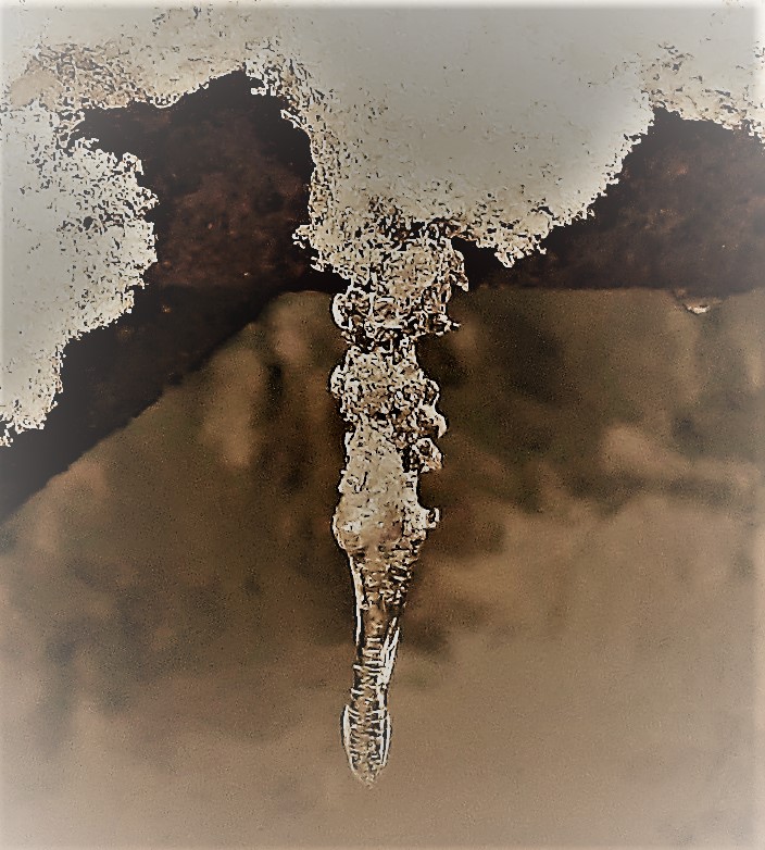 by Isabelle Utovac This photo was taken in November, during the first day of this winter, a dripping icicle on a guard rail of a pedestrian bridge. I did some post-production, obviously, to give it a vintage quality.