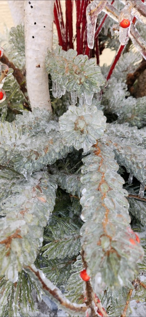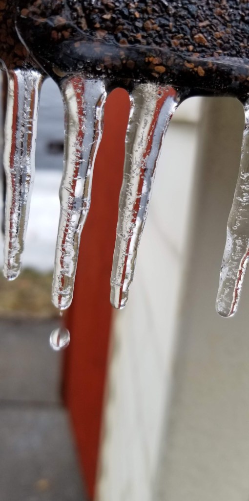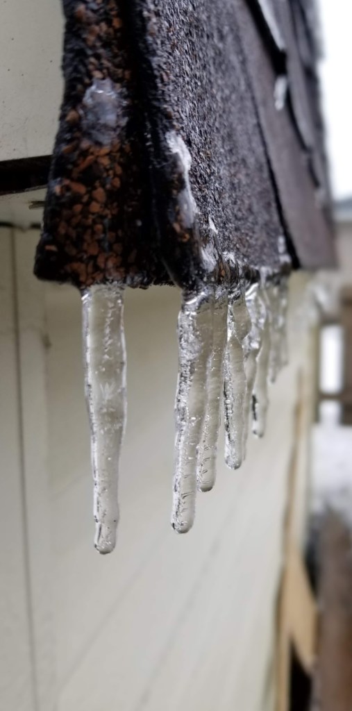 Last is a photo taken in January 2023 of any icy scene on the side of my barn.