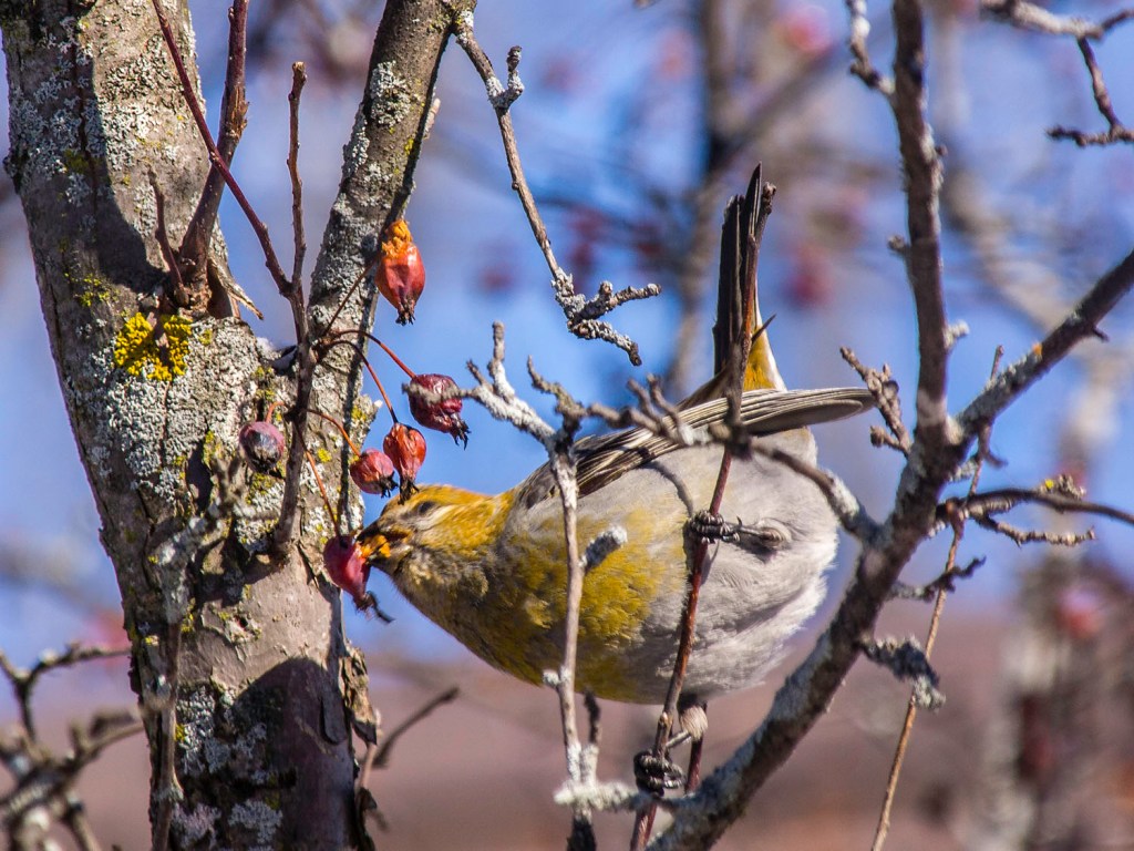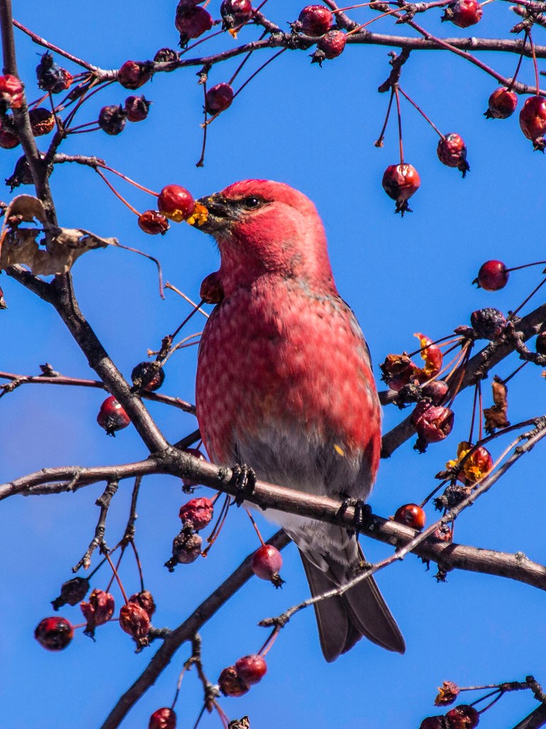 Of these birds, I have only seen snow geese (from a distance) and pigeons. I’ve never seen pine grosbeaks although I’ve seen two of their relatives: the evening and the rose-breasted grosbeaks. What a colourful family! Thanks for sharing.
