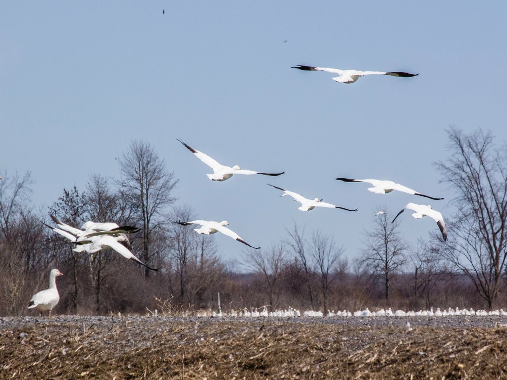 Here are some Snow Geese showing me their backs as I approach them at the settling ponds in April.