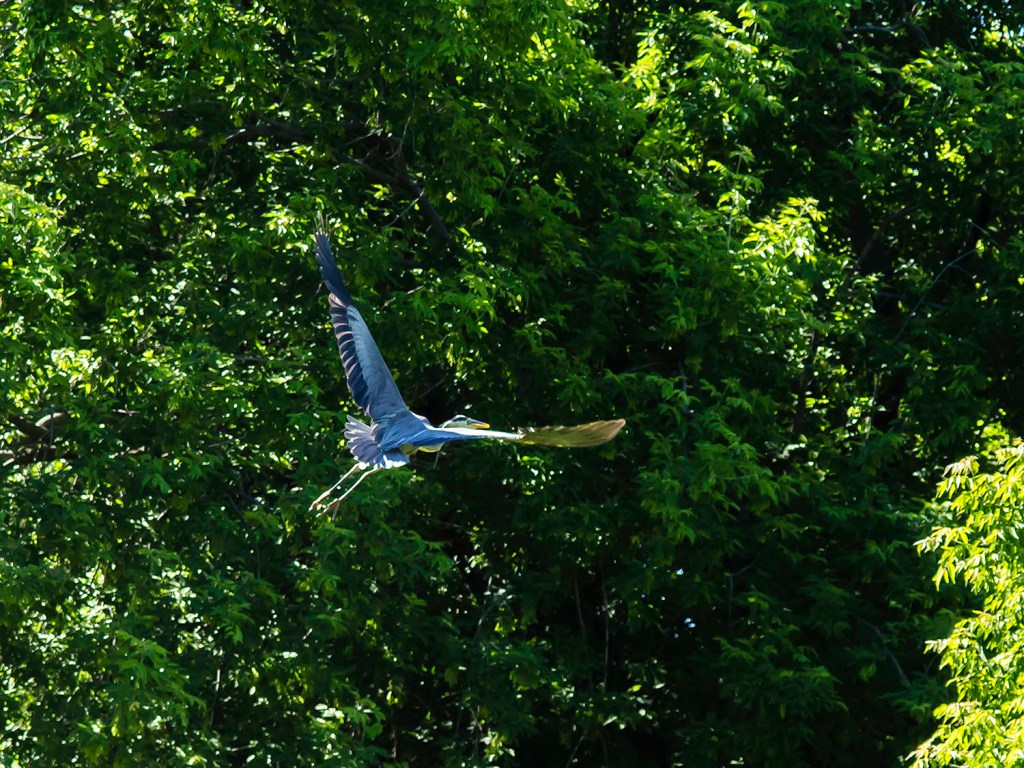 This is a Great Blue Heron making its escape as I flushed it on the Garry River just East of Main Street in June. Many of my bird pictures are “bum shots” as they are fleeing my approach.