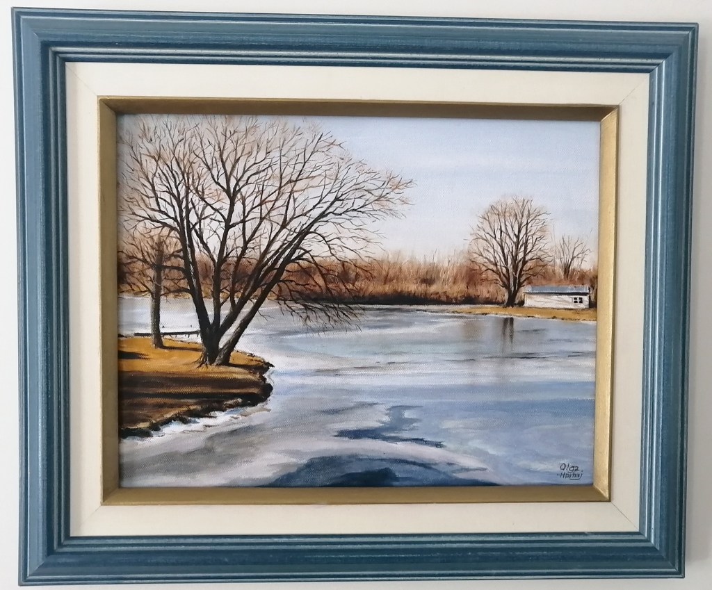 One is from a picture I took about three years ago when we first moved to South Lancaster. We are not far from Hwy 2 and the Raisin River, so I took a picture from the bridge and put it aside hoping to paint it one day.