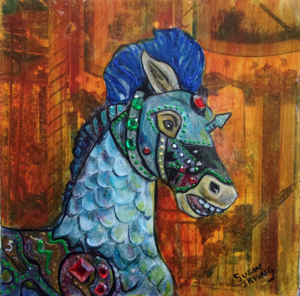Once all the paper is removed, images can be glazed, painted and embellished. Here are several completed works.