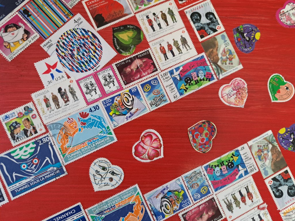 I had to forage through a lot of stamps, blue, green or red