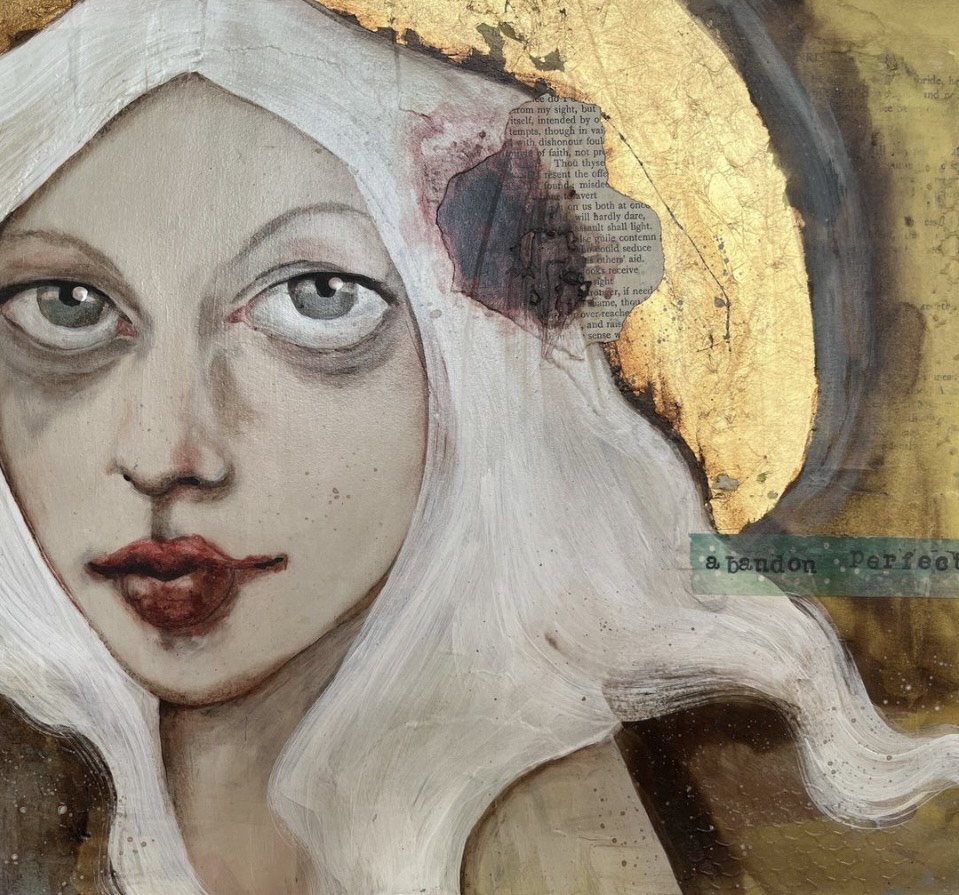 The third is something I did for a friend.  It is mixed media on cradled board called The Goldfish’s Ball.