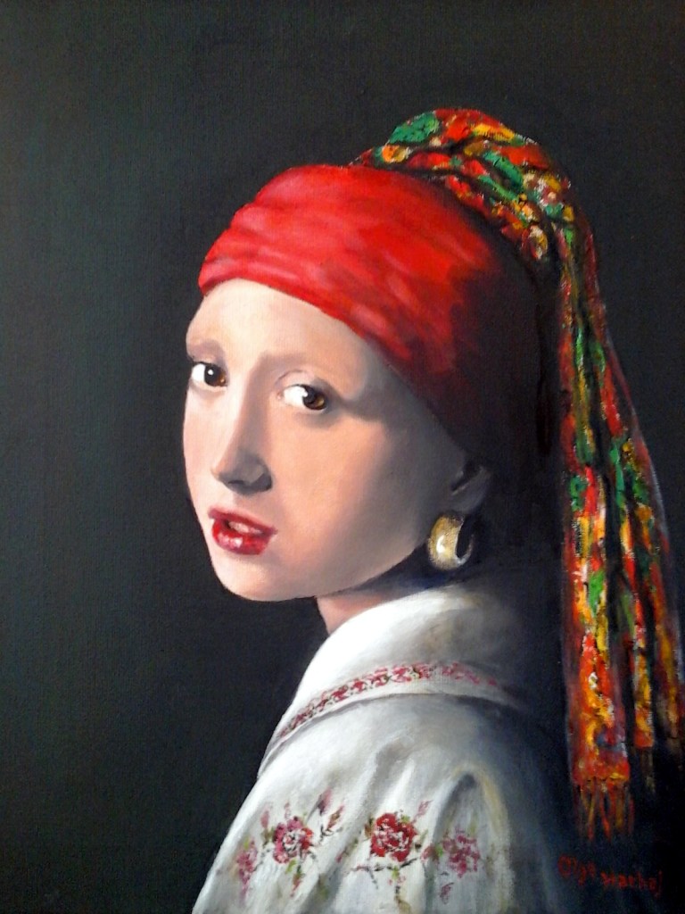 Johannes Vermeer’s “Girl with the Pearl Earring” was also a great practice piece for me. I decided to paint my own version which I call “Ukrainian Girl with the Gold earring”. This one is also in my possession.