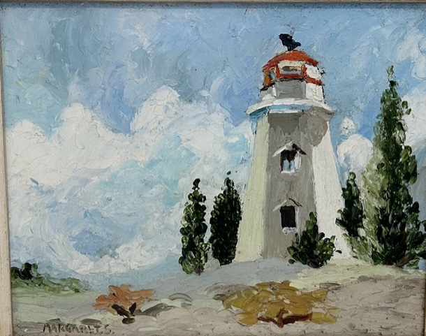 I was enrolled in an art class in Pointe Claire, handed a knife, paints and canvas and told to copy the painting. New to me, palette knife and painting lighthouses!  I believe I was 16. Like man that was a million years ago !