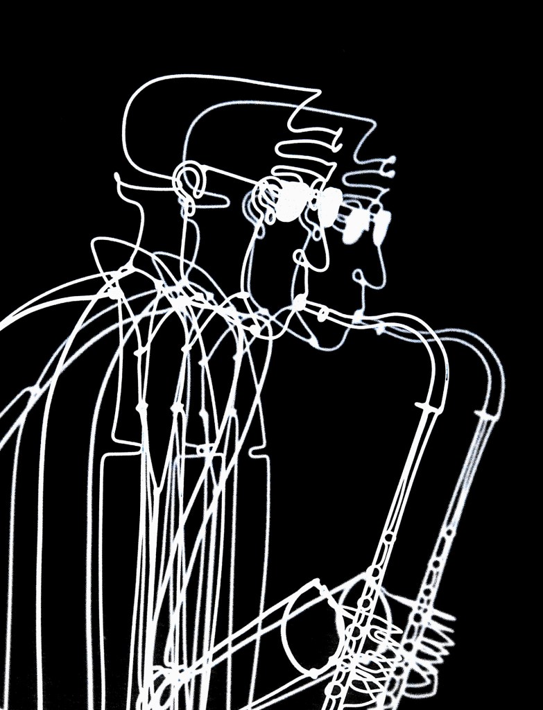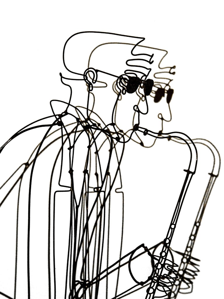 I suppose it is OK to photograph a piece of art as long as it is not a straight copy. These are elements of a larger piece of wire art of a saxophone player.