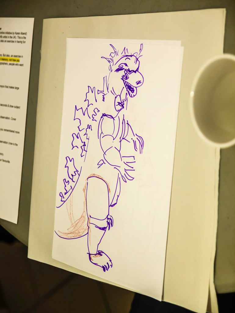 At the Collectif Coffee House of 18 March 2024, 17 folks took part in an exercise of drawing from looking & from memory – to help us “see” better. It was also an opportunity to have fun.