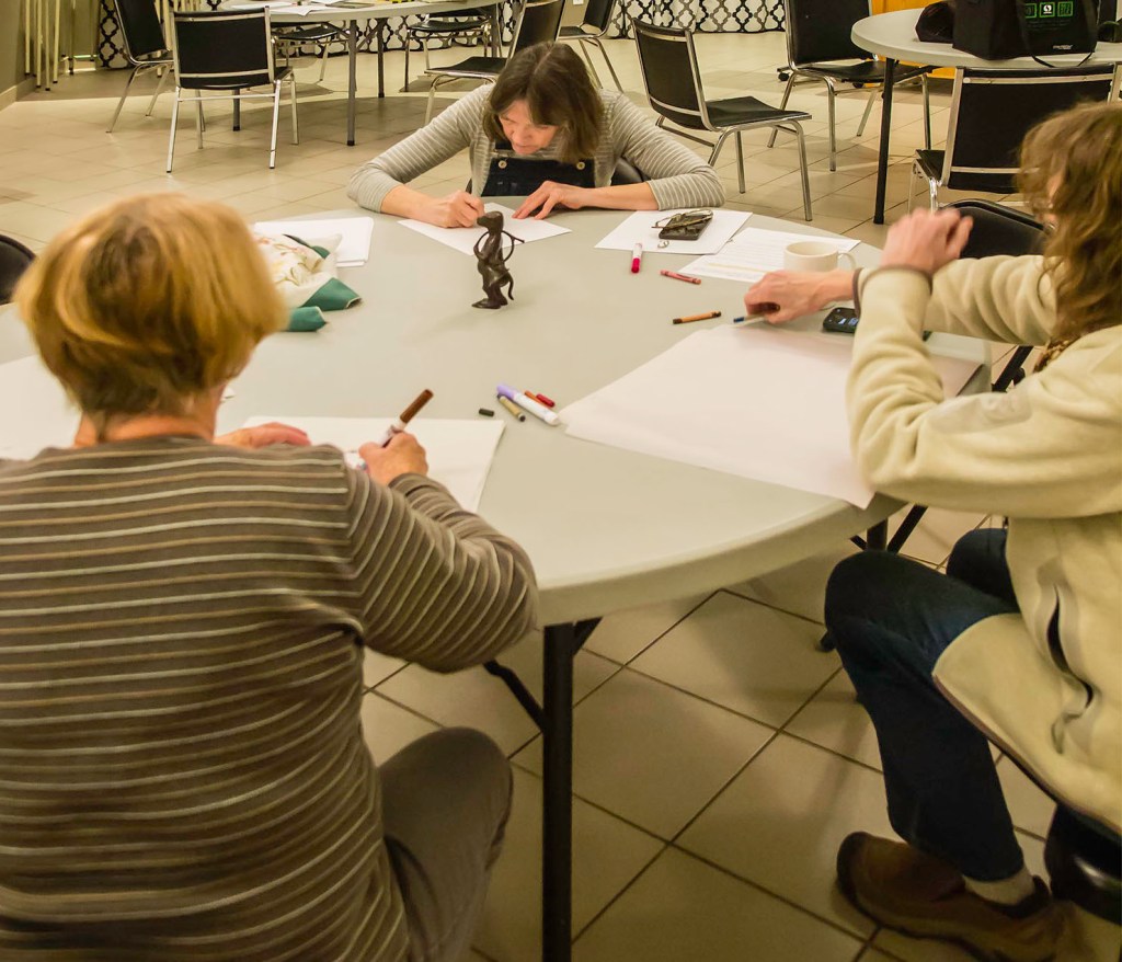 Step 4: Remove cover, set timer for 4 minutes & draw subject from observation. This started to feel good because we’d seen, remembered (sort of!) and seen again. People focused.