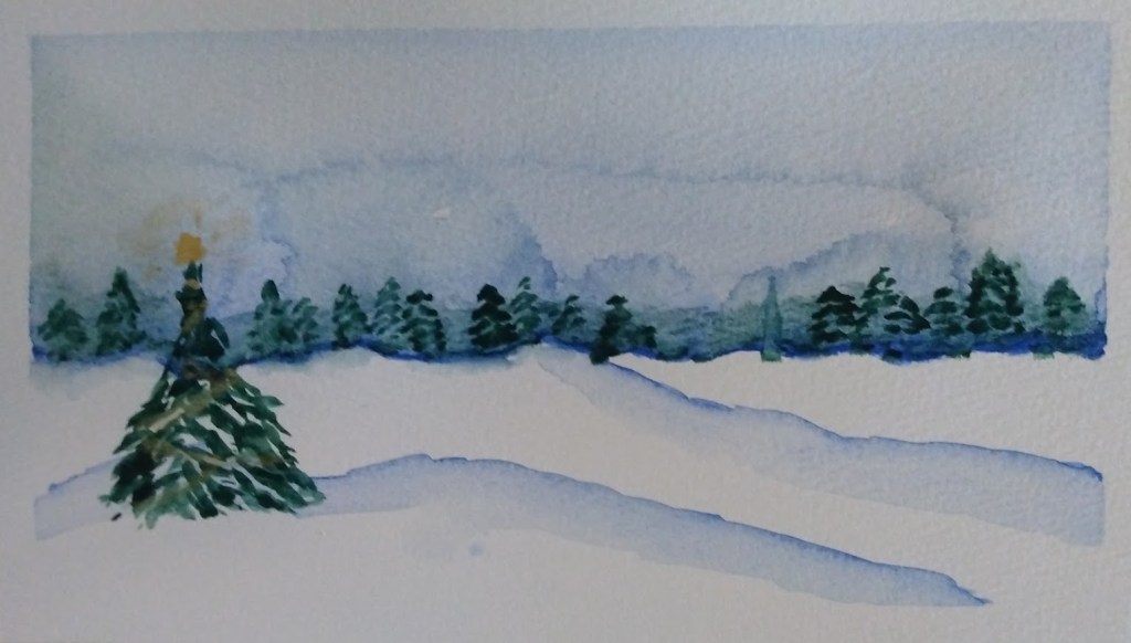 I decided to share two 5 x 8″ paintings that I did for the Holiday Season.
