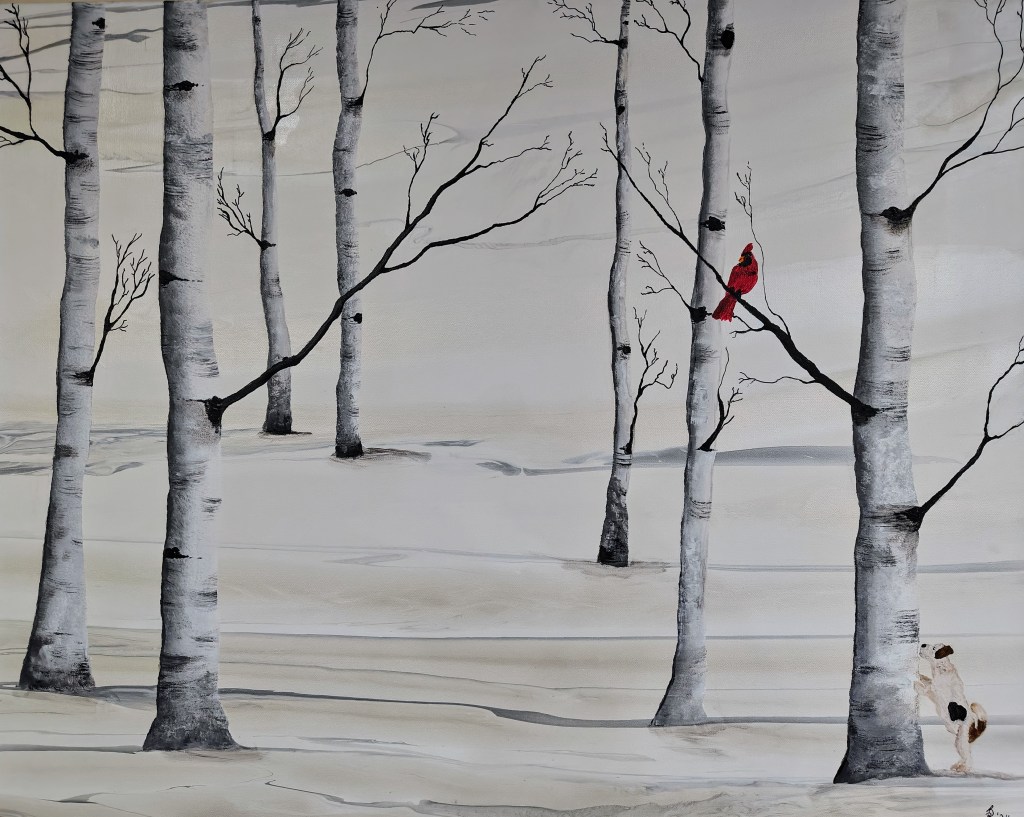 By Rose Lorimer This painting is a meditation on the enchantment,  awkwardness and challenge of relationships in the beautiful forests of our lives.