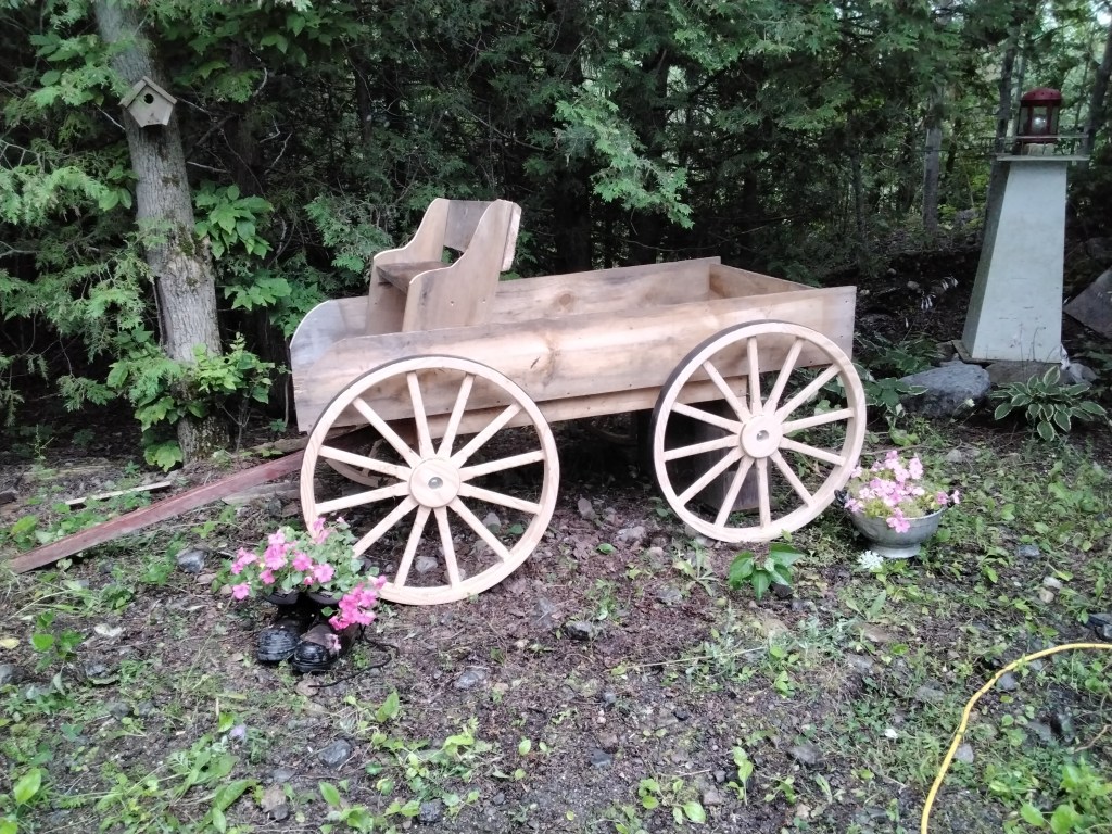 This is a memory of my friend Don. He helped me build the wheels so I could build this wagon. Don passed away last year. The wagon was built the previous year.