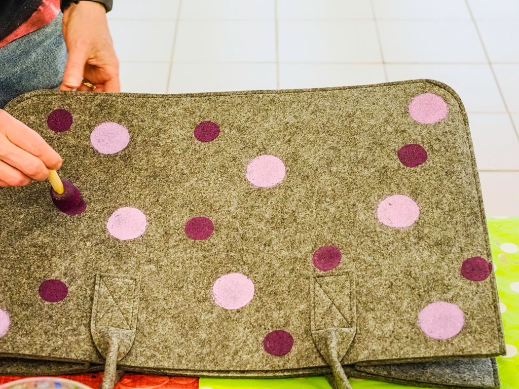 His mother, Jessica, transformed a felt carry-all. Not the only bag there.