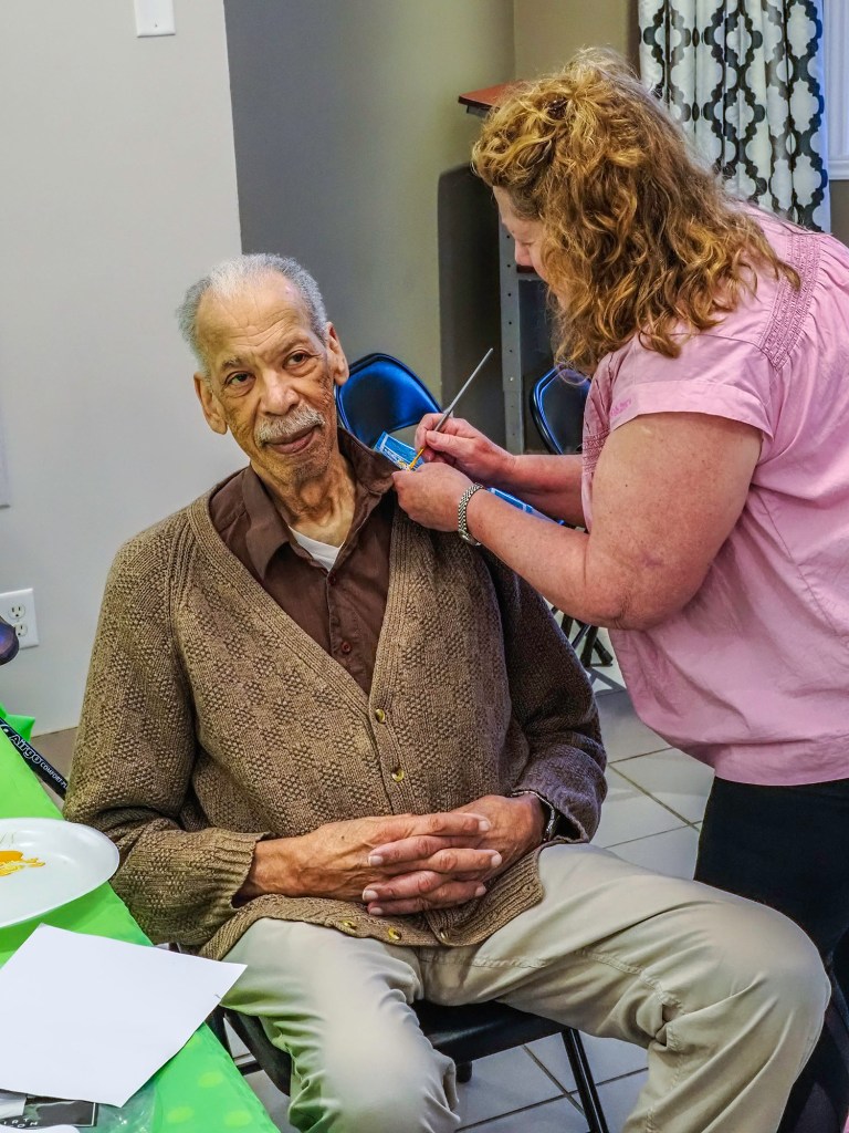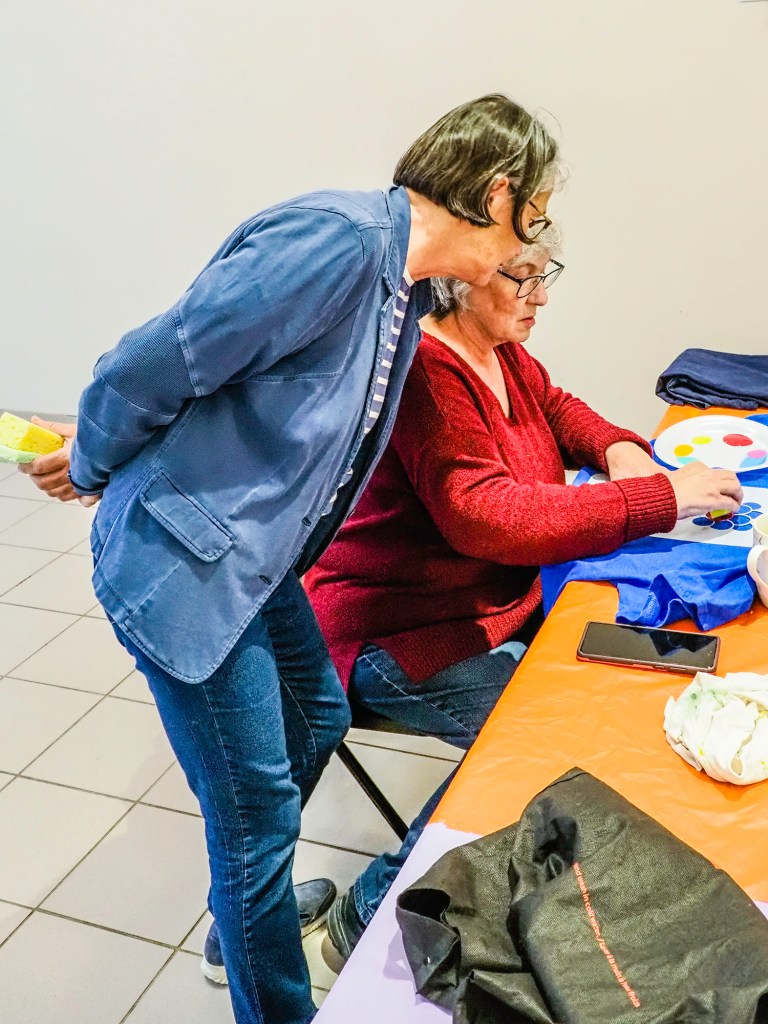 De onze ans à plus de quatre-vingt, les participants avaient une idée précise de ce qu’ils souhaitaient accomplir lors de cette soirée : égayer un T-shirt, donner de la personnalité à une veste en jean, décorer un sac avec de jolis pois, ou ajouter de la poésie au col d’une chemise avec une marguerite.