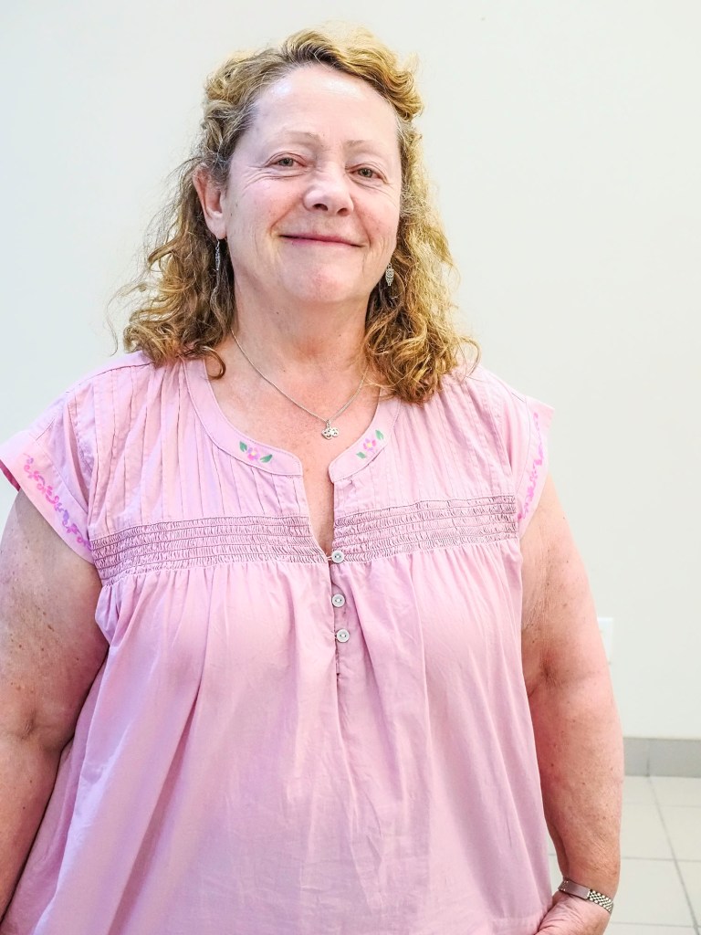 Janet added delicate detail to a blouse.