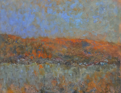 Lynne will be showing at the Alexandria Library for the month of July. This exhibit focuses on landscapes. Her’s are representational, often with unusual elements representing our connection to the past and all that has gone before.