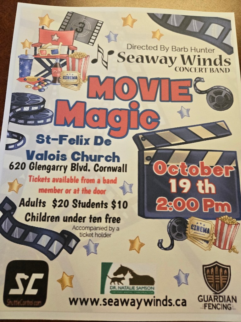 The Seaway Winds concert band will be performing famous movie tunes of all sorts on 19 October. The band leader, Barb Hunter, has once again asked Collectif member, Janet Harris Timms, to be guest vocalist! (Janet’s husband, Brian, plays his bassoon with the band.