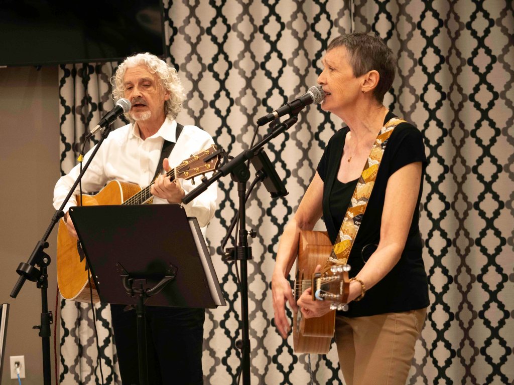It is my pleasure & honour to present to you the premiere of the new duo – DITTO. Bobi Leutschaft Poitras & Bobby Colosino – hence the name Ditto – are two very talented artists who have combined their genuine joy for music to complement each other’s creativity in writing & composing music to co-produce & perform original pieces. Please join me in welcoming them for their very first performance.